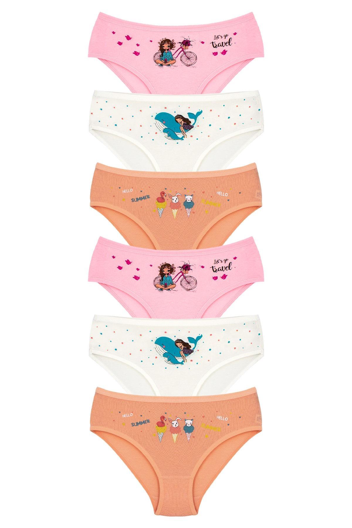 Somon, pembe ve ekru tonlarında, yumuşak dokulu, eğlenceli karakter baskılı kız çocuk külotu. %96 Pamuk, %4 Elastan
