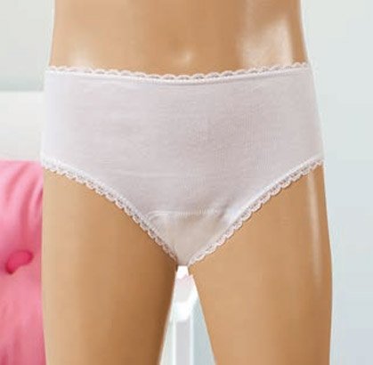 Beyaz renkte, yumuşak dokulu ve esnek bel lastiğine sahip kız çocuk külotu. %100 Pamuk