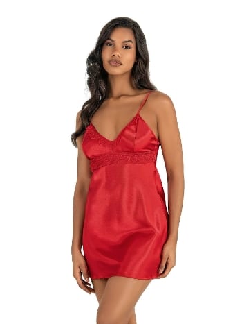 Kırmızı Saten Gecelik Kadın Ahu 8216