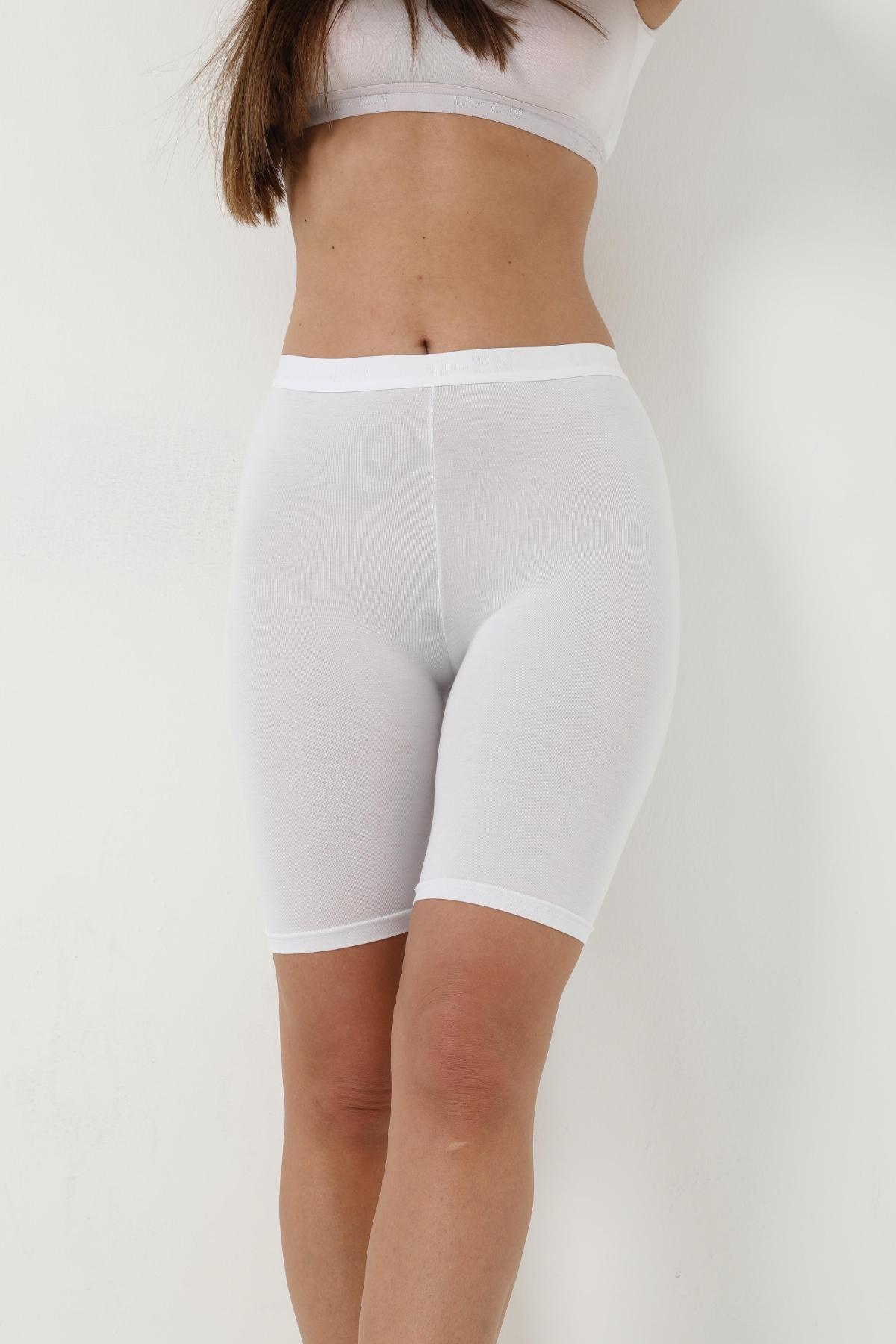Beyaz renkte, yüksek bel ve esnek dikiş yapısı ile tasarlanmış, bambu kumaşlı tayt. %92 Bambu, %8 Elasten (Likra)
