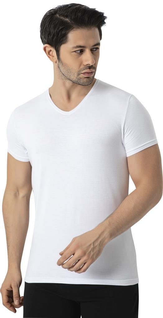 Siyah ve beyaz renk seçenekleriyle, bambu kumaştan üretilmiş V yaka atlet, kısa kolludur. % 62 Bamboo, %30 Viskon, %8 Lycra