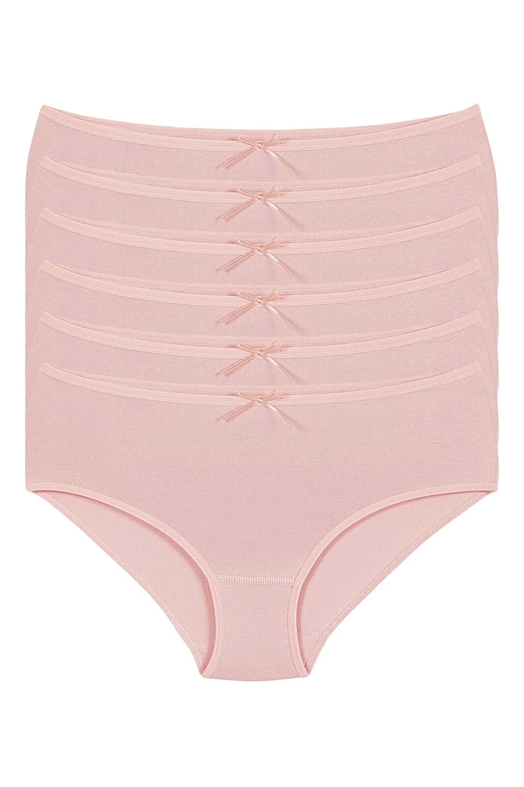 Pudra tonlarında, yüksek bel kesim, yumuşak dokuya sahip bambu külot seti. %94 Bambu, %6 Elastan