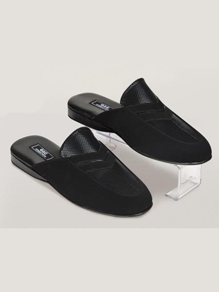 Somon renginde nubuk baskılı tasarımıyla dikkat çeken şilte tabanlı erkek terliği, rahat ve şık bir alternatif sunar.