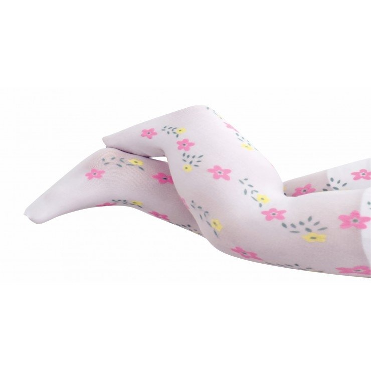 Beyaz tonunda, ince yapılı ve esnek bir dokuya sahip bebek külotlu çorap.