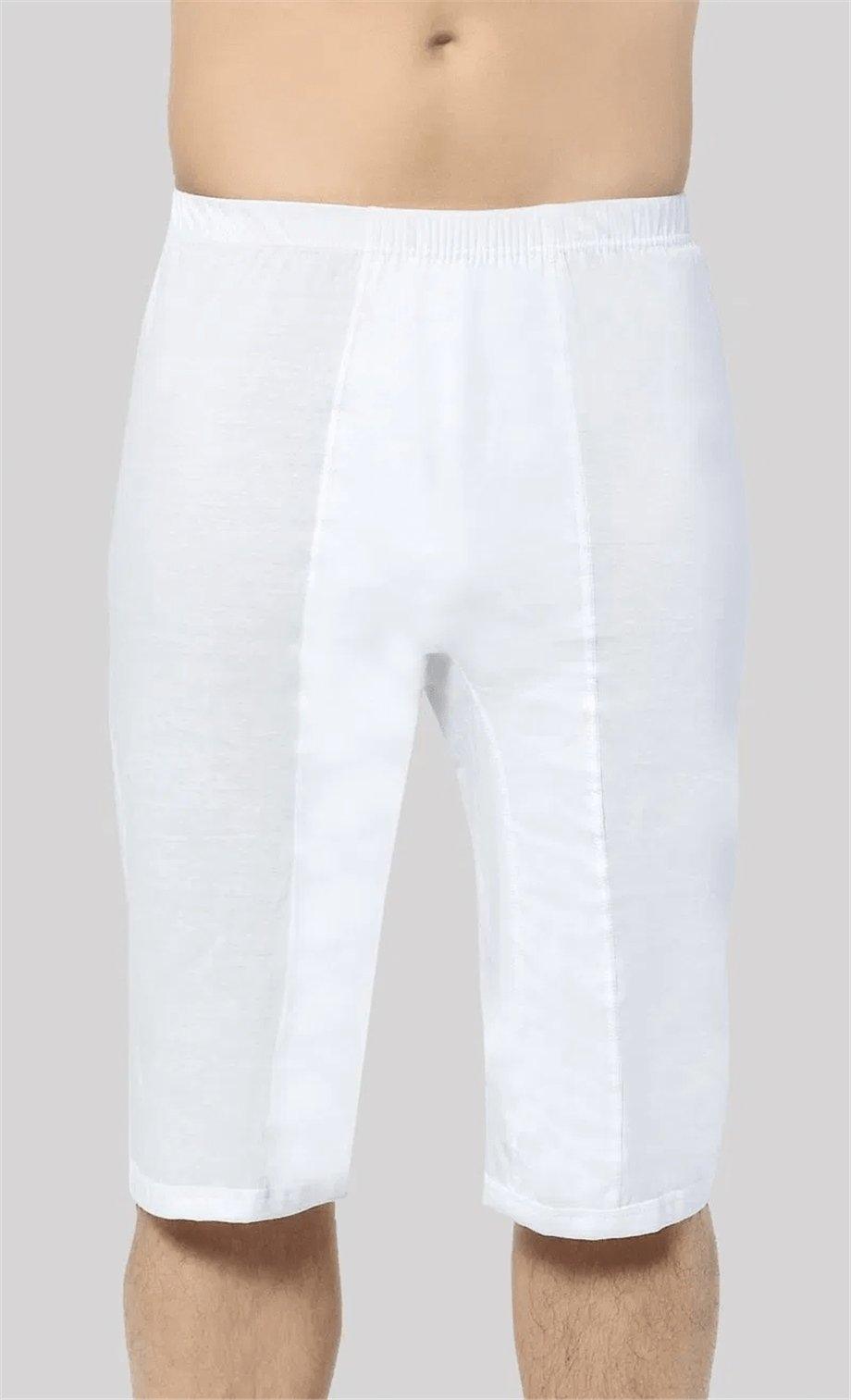 Beyaz, pamuklu dokuda uzun paçalı boxer; esnek bel lastiği ve loklu detaylarla modern bir tasarıma sahip. %100 Pamuk