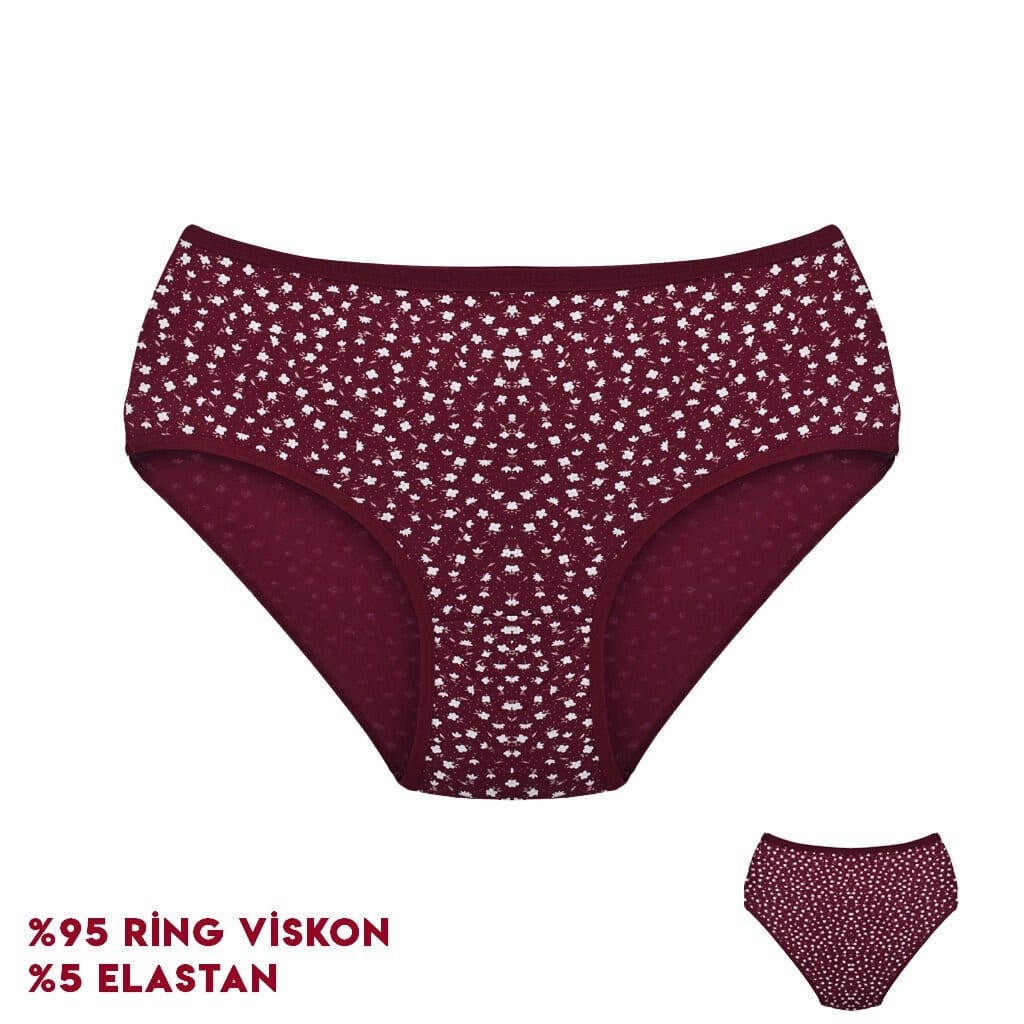 Bordo tonlarında, desenli yapısıyla dikkat çeken yüksek bel külot, esnek kumaşıyla konfor sunuyor.