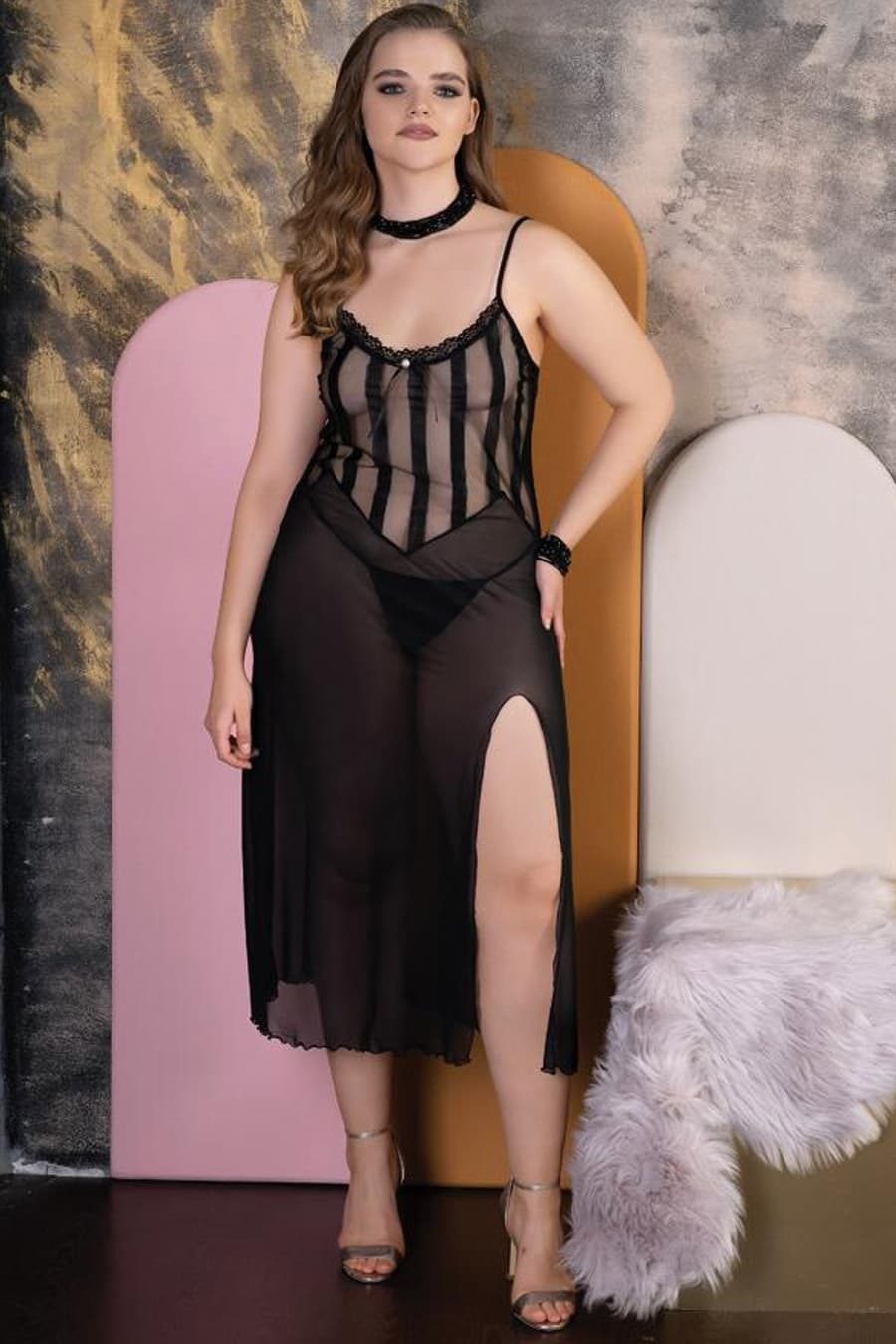 Büyük beden kadınlar için özel olarak tasarlanmış olan bu uzun siyah fantezi gecelik, her özel anınızda stilinizi ön plana çıkarıyor. Geceliğin uzun kesimi, zarif duruşu ile vücut hatlarınızı nazikçe sararak, hem konforu hem de şıklığı bir arada sunuyor. Siyah rengi, her zaman için zarafet simgesi olarak kabul edilirken, bu modeldeki dantel detayları, feminen bir hava katıyor.