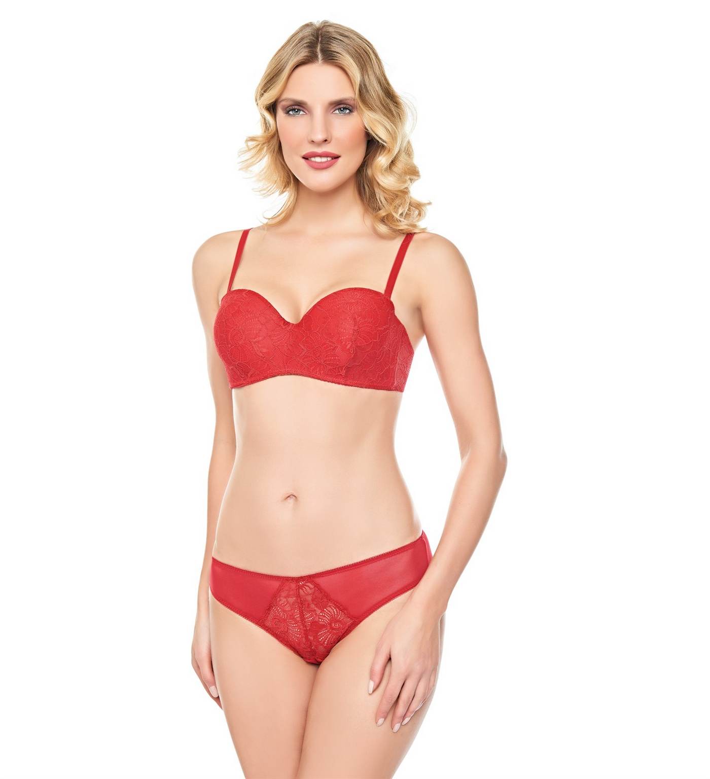 Dantel detaylarıyla bezenmiş olan bu desteksiz sütyen takımı, hem şıklığı hem de konforu bir arada sunar. Kullanılan elastik dantel, vücut hatlarına mükemmel şekilde uyum sağlarken, hareket kabiliyetinizi kısıtlamadan gün boyu rahatlık sunar. İç astar kaplaması sayesinde dış giyimde belli olmamakla birlikte, dantel dokusu da göz alıcı bir zarafet katmaktadır. Özellikle ince bluzlar altında rahatlıkla giyilebilir.