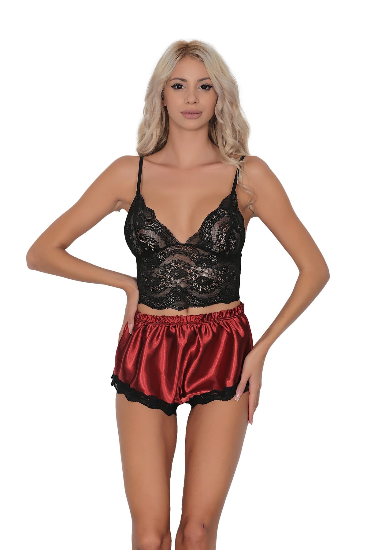 Somon tonlarında tasarlanmış olan bu dantel detaylı saten şort takımı, hem zarif görünümü hem de konforu bir araya getiriyor. Dantel büstiyer, hafif dokusu ile cildinizi nazikçe sararken, şort kısmı ise hareket özgürlüğü sağlıyor. Özellikle aktif yaşam tarzına sahip olanlar için tasarlanan bu set, gün boyu rahat hissetmenize yardımcı oluyor. Her bir detayında kalitenin hissedildiği bu takım, özel geceler için de harika bir seçenek sunuyor.
