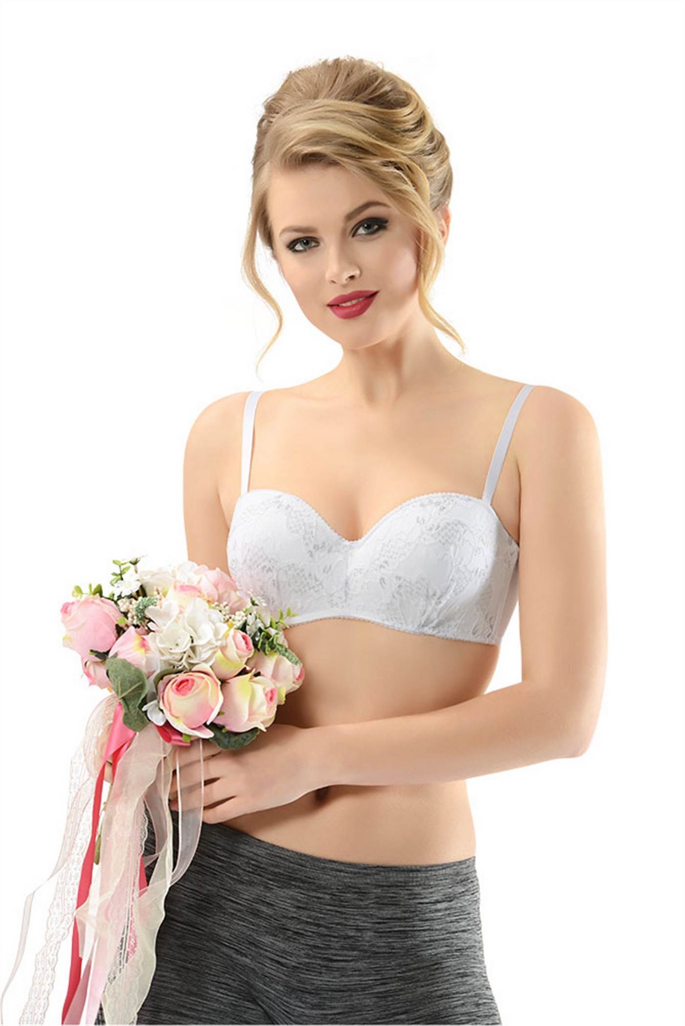 İnce Fransız dantel detayları ile süslenmiş, şeffaf dokulu straplez sütyen.