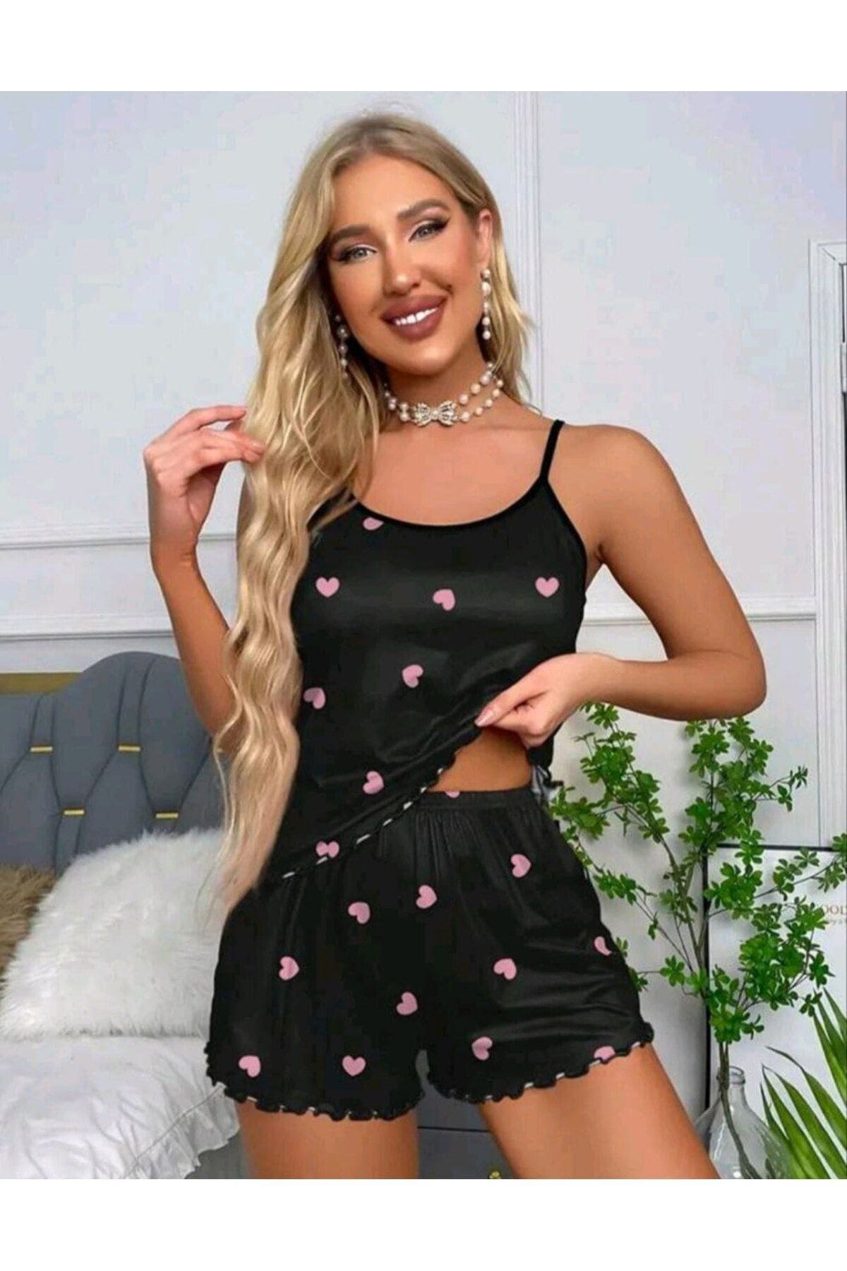 Somon renginde, dantel detaylı şort takımı; hafif ve nefes alabilir yapısıyla konfor sunar. %90 Poliamid, %10 Elastan