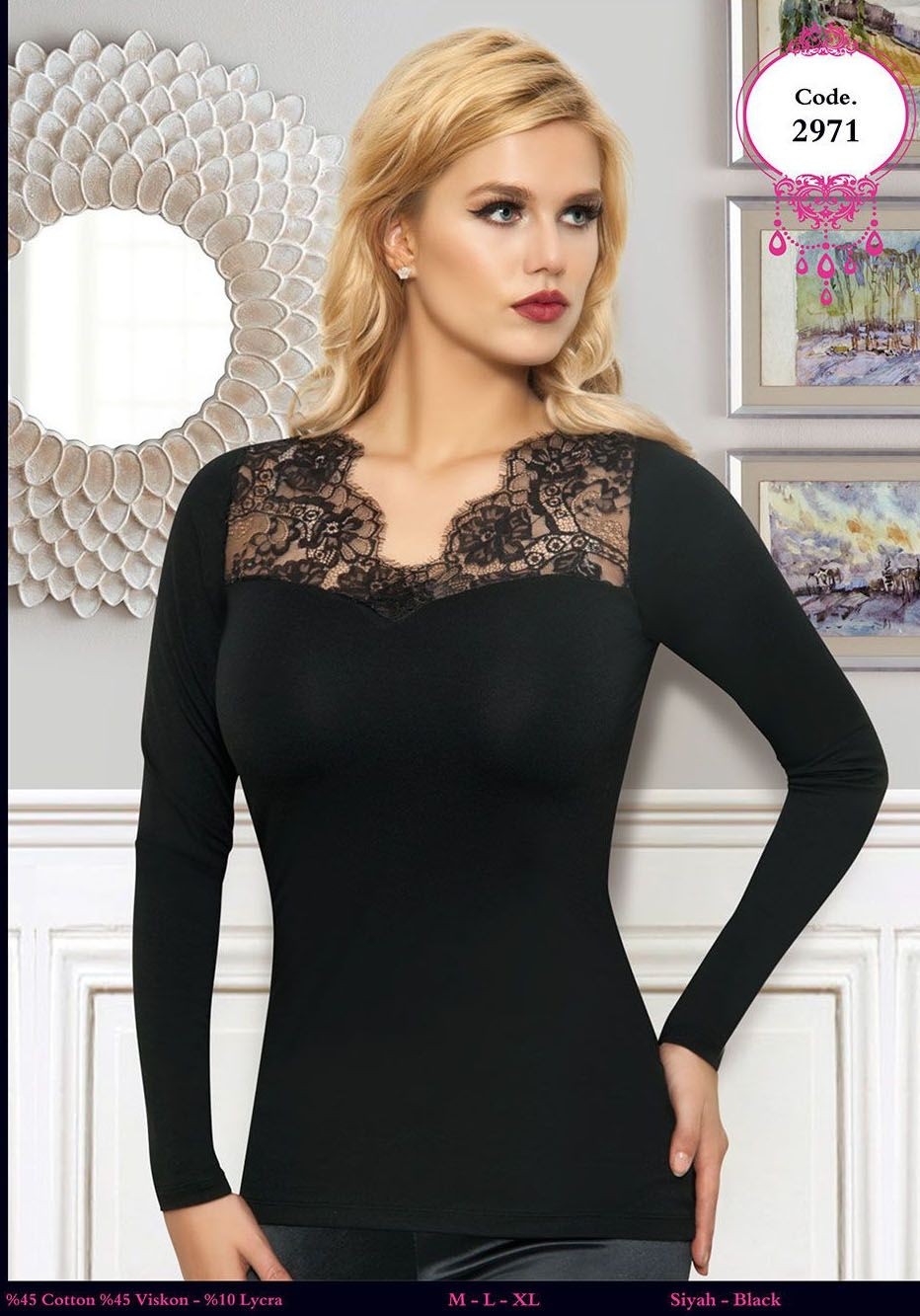 Gümüş tonlarında, dantel detaylı uzun kollu kadın atleti. Yumuşak pamuk dokusuyla günlük kullanım için idealdir.