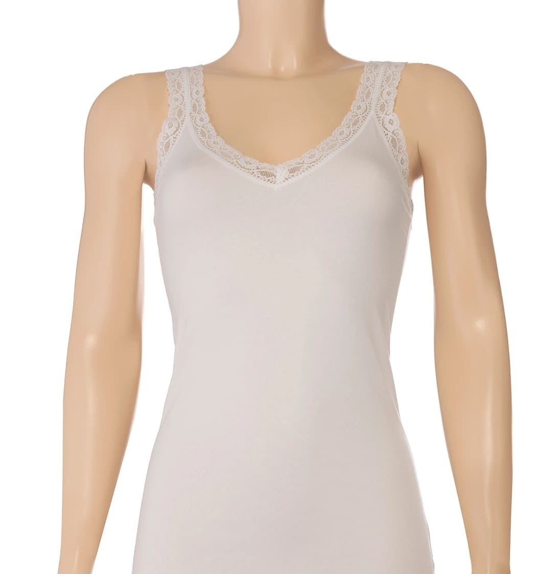 Ekru tonlarında, dantelli detaylara sahip ince askılı kadin atlet, günlük kullanım için idealdir.