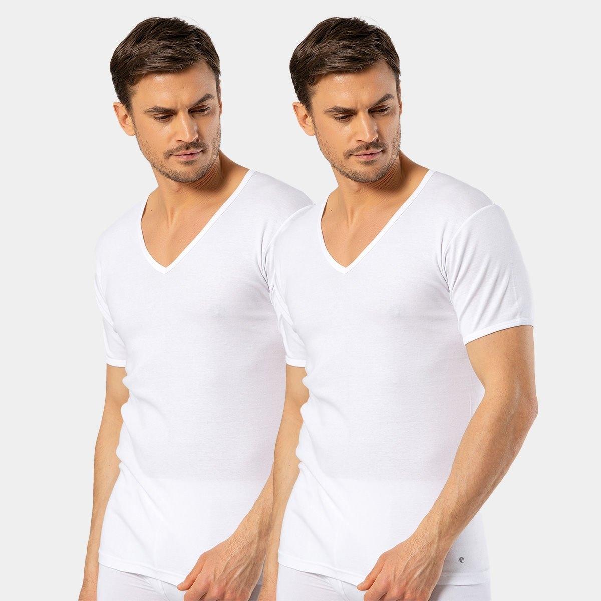 Beyaz, yumuşak pamuk kumaştan üretilen, derin V yaka kesimli atlet. Rahat kullanım için kısa kollu tasarımı bulunuyor. %100 Pamuk