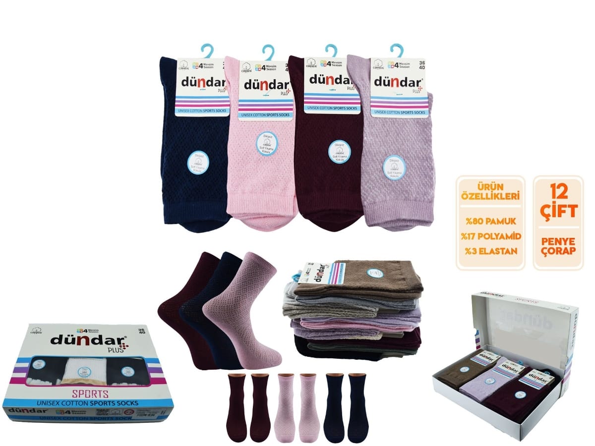 Mor tonlarında, dikişsiz ve kokulu yapısıyla konfor sunan 12'li çorap seti.