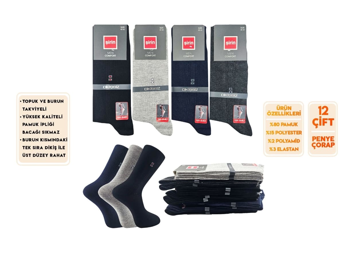 Ayrıca, takviyeli burun yapısıyla çorapların dayanıklılığı artırılmıştır. Bu özellik, günlük kullanımda oluşabilecek yıpranmaları en aza indirir. 12’li set seçeneği, uzun süreli bir kullanım imkanı sunarken, bu çorapları ofiste, evde veya sosyal etkinliklerde rahatlıkla tercih edebilirsiniz. Hem estetik hem de fonksiyonel bu çorap seti, günlük giyiminizi tamamlayacak ideal bir parçadır.
