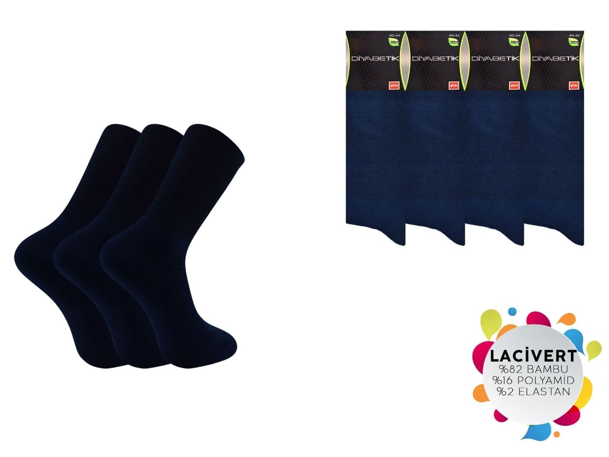 Lacivert tonlarında, dikişsiz tasarıma sahip bambu erkek çorap seti. Rahat kesim ile gün boyu konfor sunar.