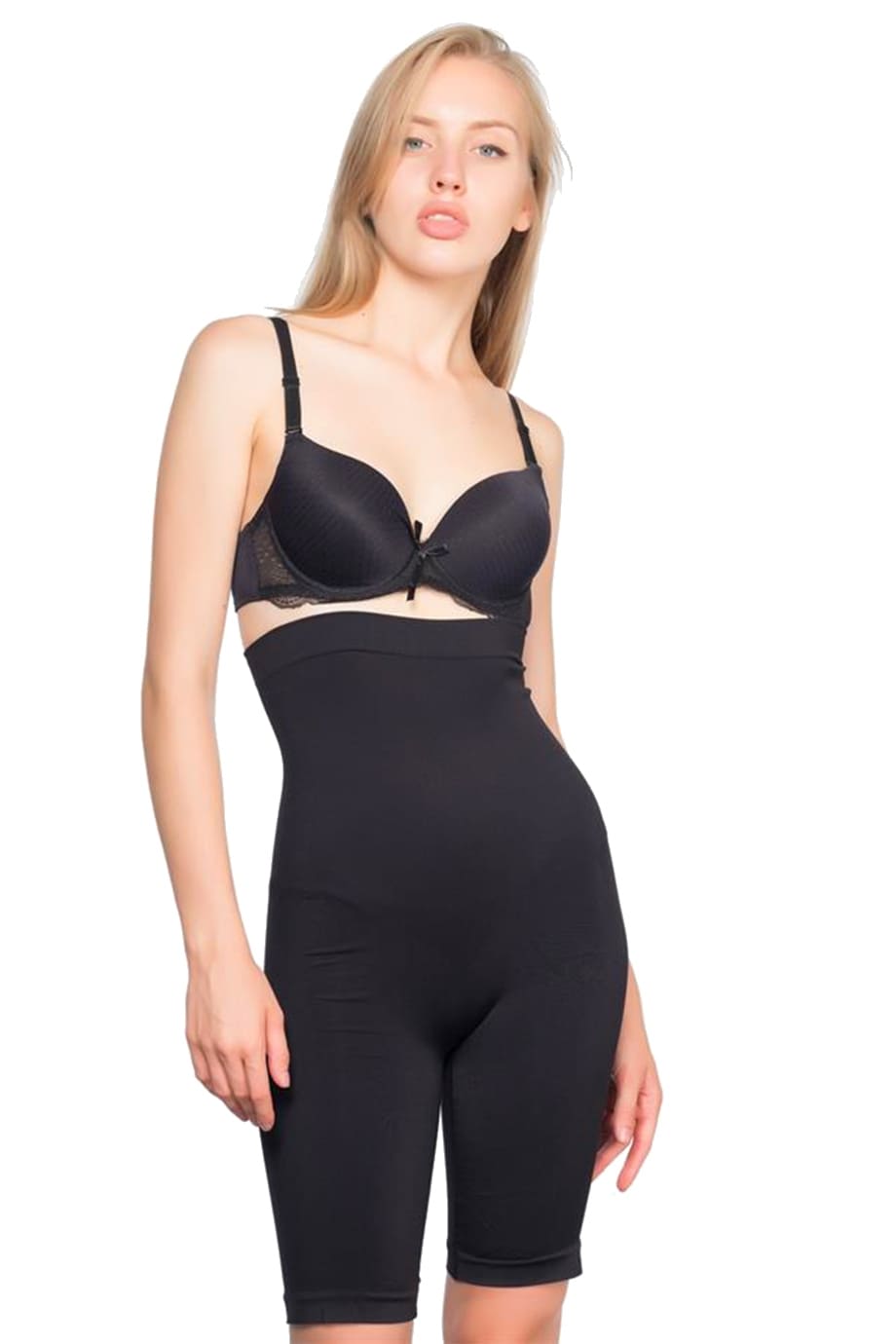 Siyah, dikişsiz yapısı ve yüksek bel kesimiyle vücut hatlarını düzeltmeye yardımcı olan korse. %88 Microfiber Polyamid, %12 Elastan