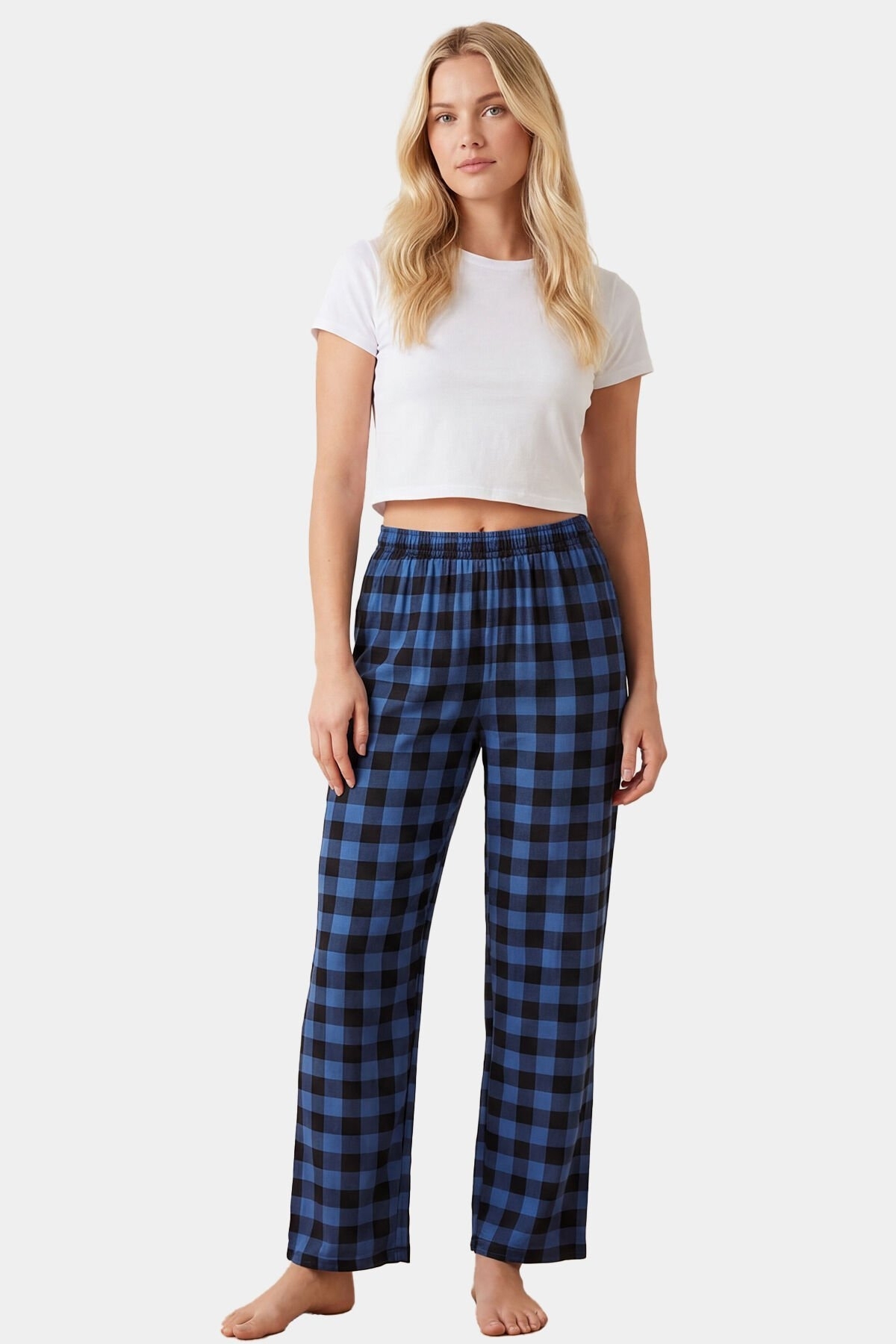 Mavi tonlarında dokuma tek alt pantolon, ev giyimi için pratik ve rahat bir tercih sunuyor. Kumaş dokusu oldukça yumuşak olup, cilde nazik bir dokunuş sağlıyor. Esnek bel lastiği, pantolonunuzu rahat bir şekilde oturtarak, gün boyu hareket özgürlüğü sunar. Bu özellik, özellikle evde dinlenirken ya da misafirlikte konfor arayanlar için büyük bir avantaj sağlıyor.