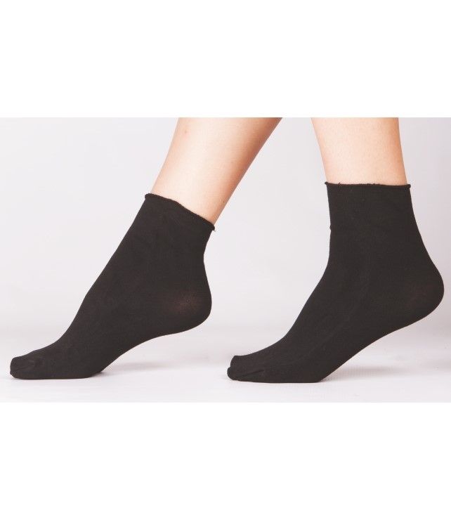 Siyah renkte, lastiksiz tasarımı ile konfor sunan bambu soket çorap.