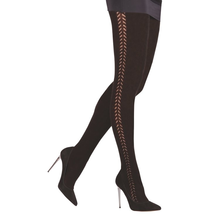 Siyah renkte, düşük denye kalınlığına sahip, hafif dokulu külotlu çorap. %90 polyamide, %10 elastane