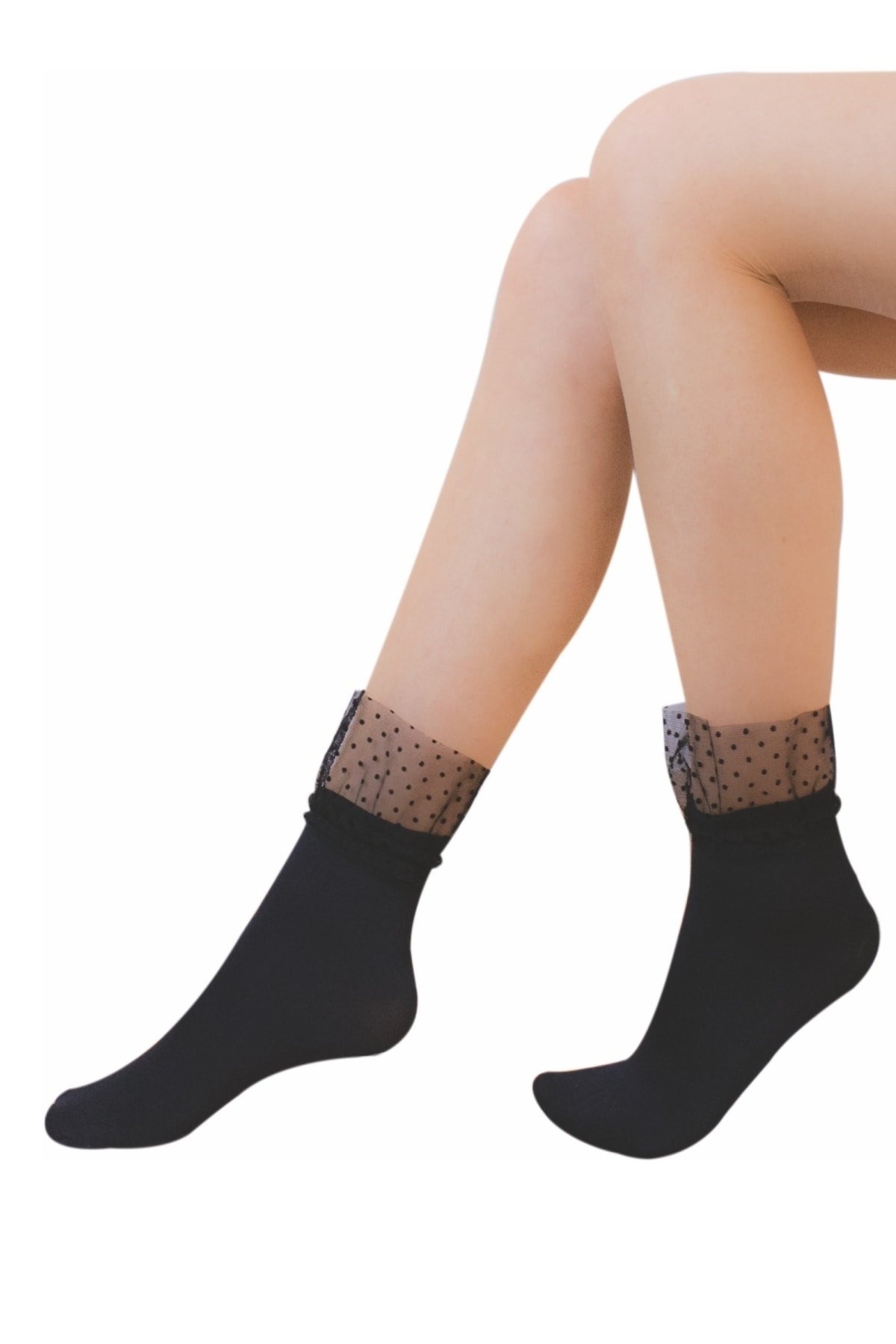 Siyah renkte, ince dokulu ve tüllü tasarımıyla şık bir soket çorap.