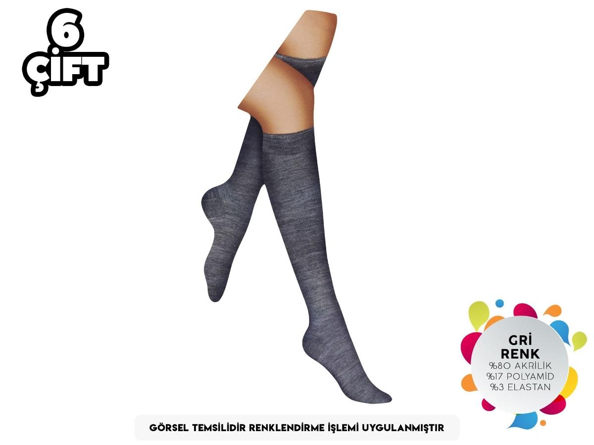 Gri renkte, yün akrilik karışımlı, diz altı çorap. İnce yapısıyla günlük kullanım için ideal.