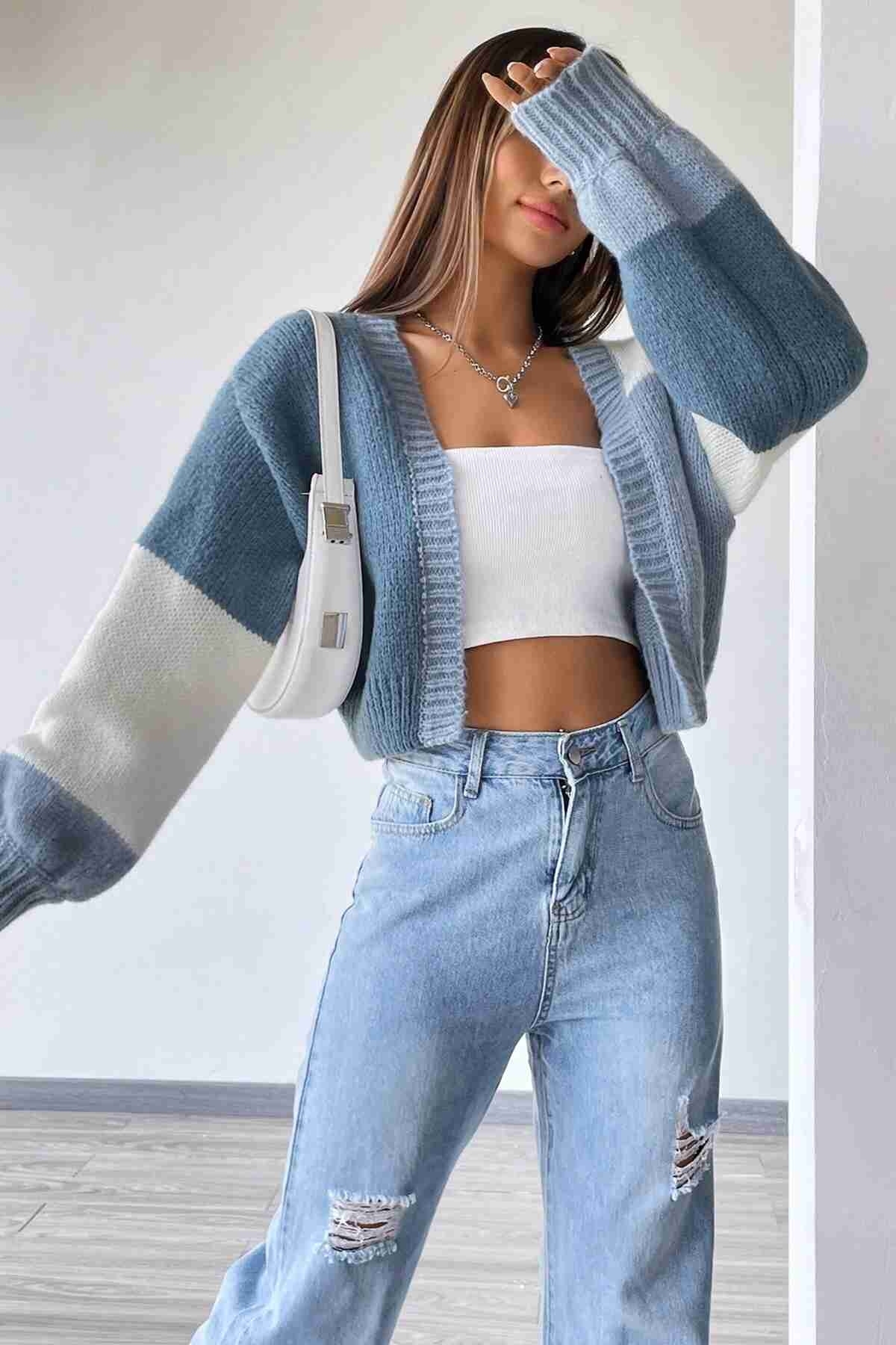 Merry See Düşük Omuzlu Yumuşak Dokulu Salaş Triko Hırka Çok Renkli - MS4418-Çok Renkli