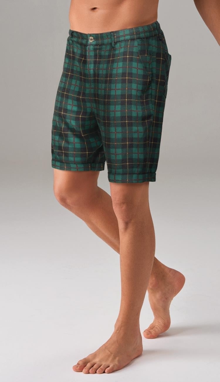 Yeşil ekose desenine sahip cepli şort, pamuklu dokusu ile günlük kullanım için idealdir.