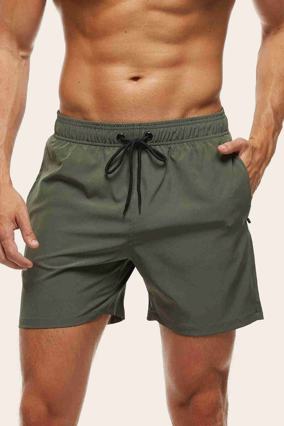 Angelsin Erkek Basic Standart Boy Mayo Fermuarlı Cepli Deniz Şortu Yeşil %80 Polyamid, %20 Likra