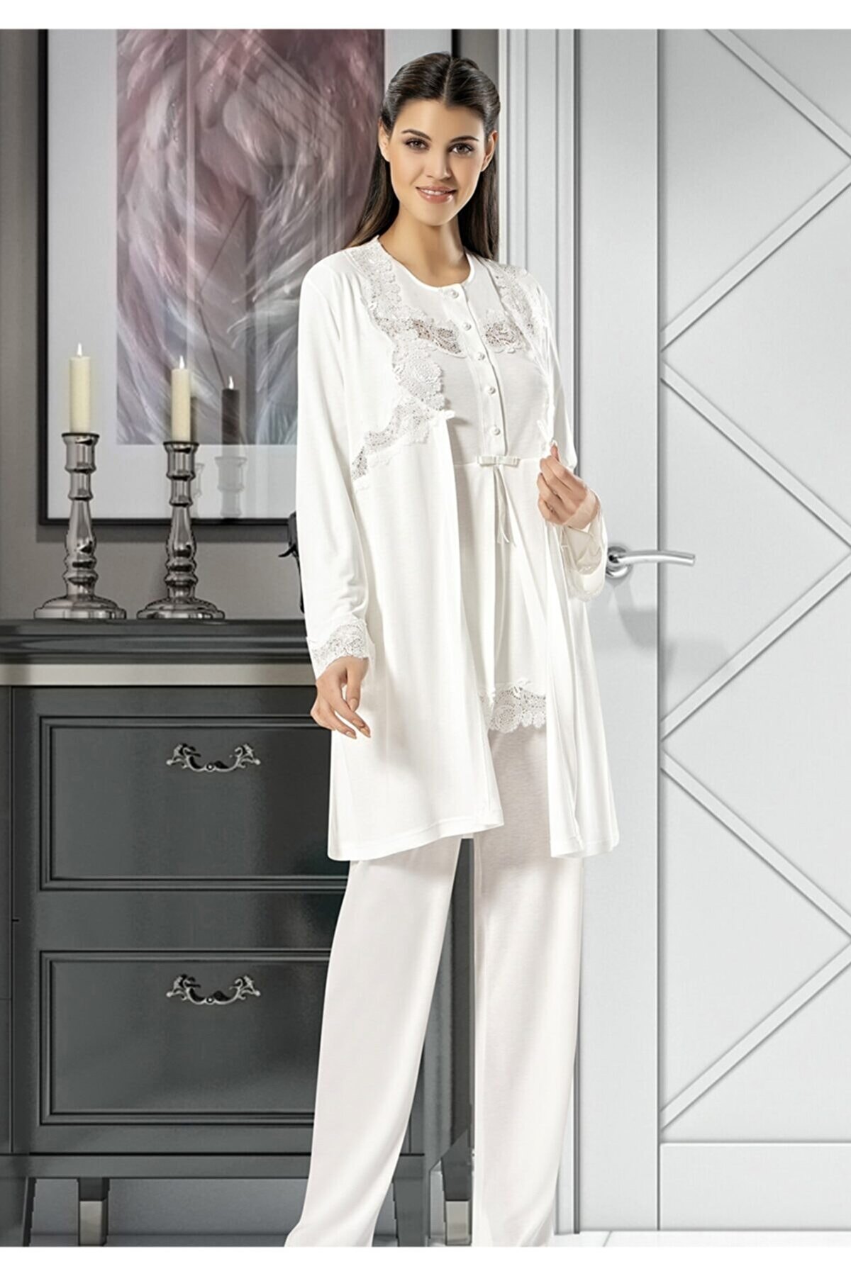 Pijama takımının pratik emzirme açıklığı, doğum sonrası dönemlerde annelerin en çok ihtiyaç duyduğu özelliklerden biridir. Bu özellik, anında erişim sağlayarak, emzirme sürecini kolaylaştırır. Aynı zamanda, gece uykularında veya gündüz dinlenme anlarında rahatça kullanılabilir. Yumuşak viskon kumaşı, hassas ciltler için idealdir ve gün boyunca sizi rahat hissettirir. Bu detay, yeni annelerin kendilerini daha iyi hissetmelerini sağlar.