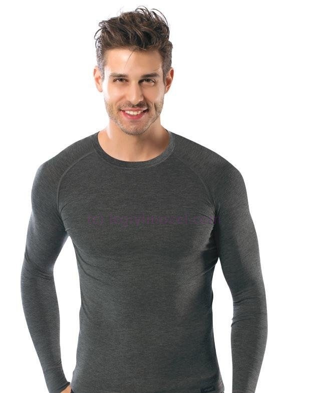 Antrasit renkte, fırçalı iç yüzey ve elastan karışımı ile hareket kabiliyeti sunan termal fanila. %45 Modal, %45 Koton, %10 Elastan