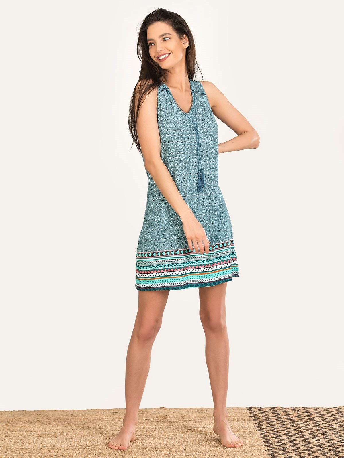 Etnik desenli, hafif viskon kumaştan üretilmiş gece elbisesi. Rahat kesim ve şık görünüm sunuyor.