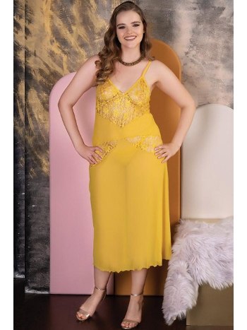 Erotik Uzun Gecelik Sarı Poliamid Elastan İzabel 5001