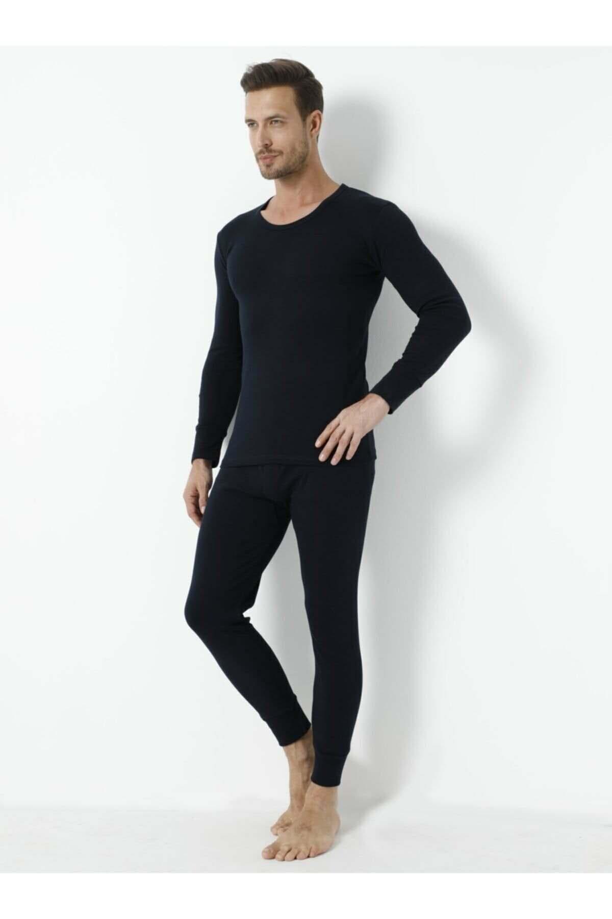 Siyah renkli termal içlik takımı, fırçalı dokusu ile sıcak tutarken, esnek yapısı rahat bir kullanım sunar. %47 Viskoz, %47 Polyester, %6 Elasten