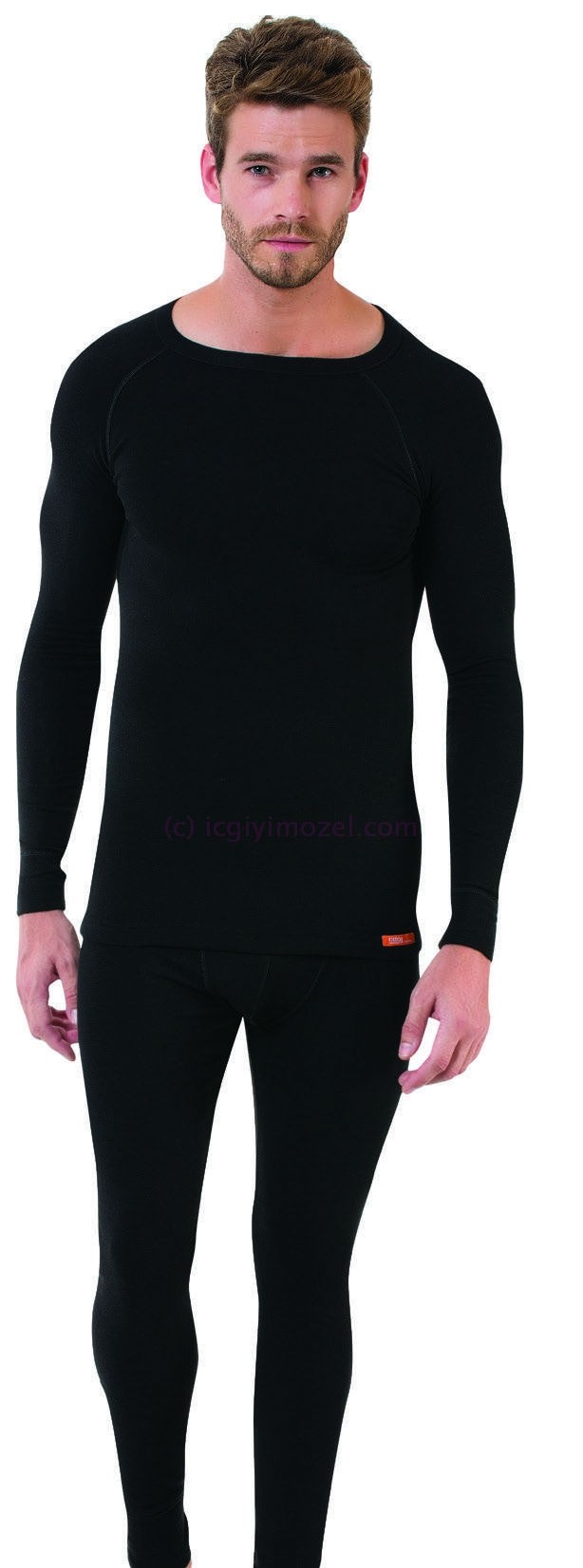 Siyah renkli, fırçalı iç yüzeye sahip termal takım, vücut sıcaklığını koruyarak konfor sağlıyor.