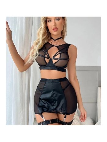 Deri Siyah Fileli Fantezi Sütyen Takım For Dreams 8492