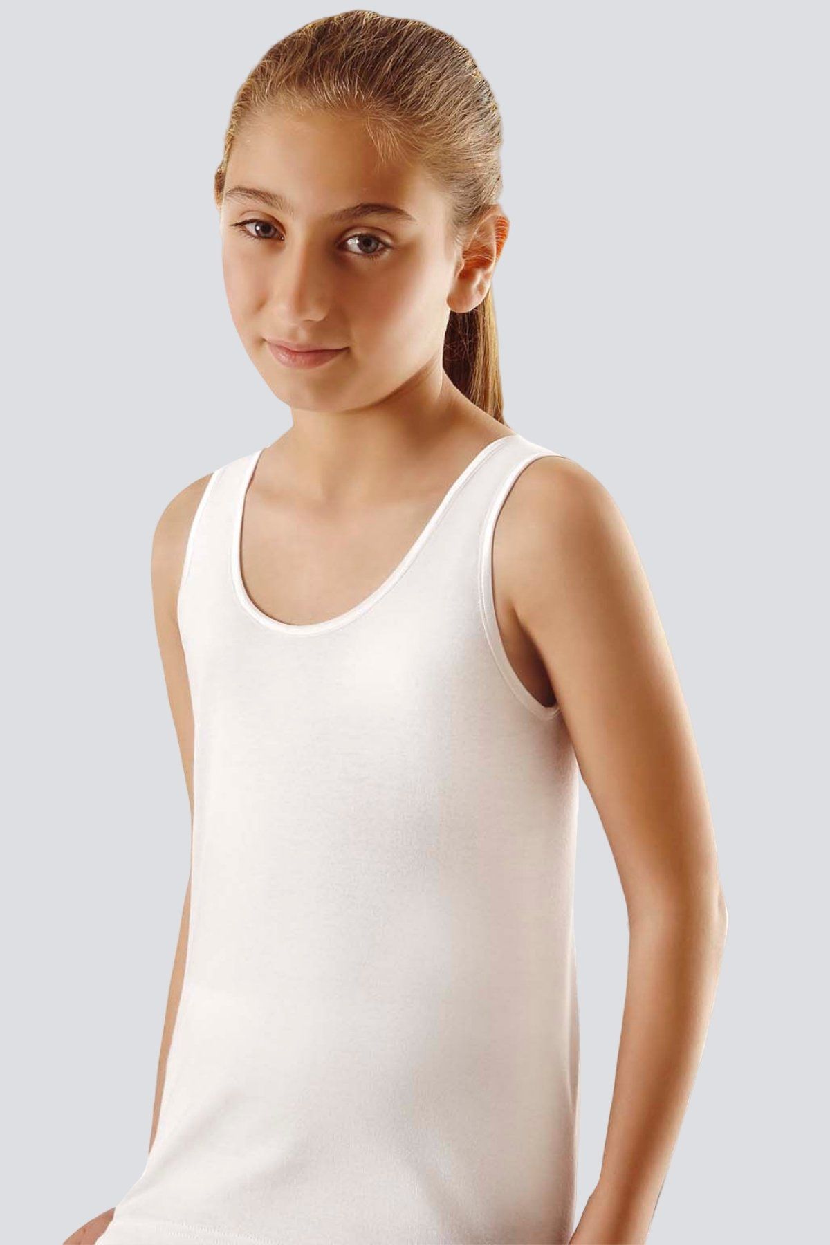 Beyaz renkte, geniş askılı, yumuşak pamuklu kaşkorse atletler, günlük kullanım için rahat kesim.
