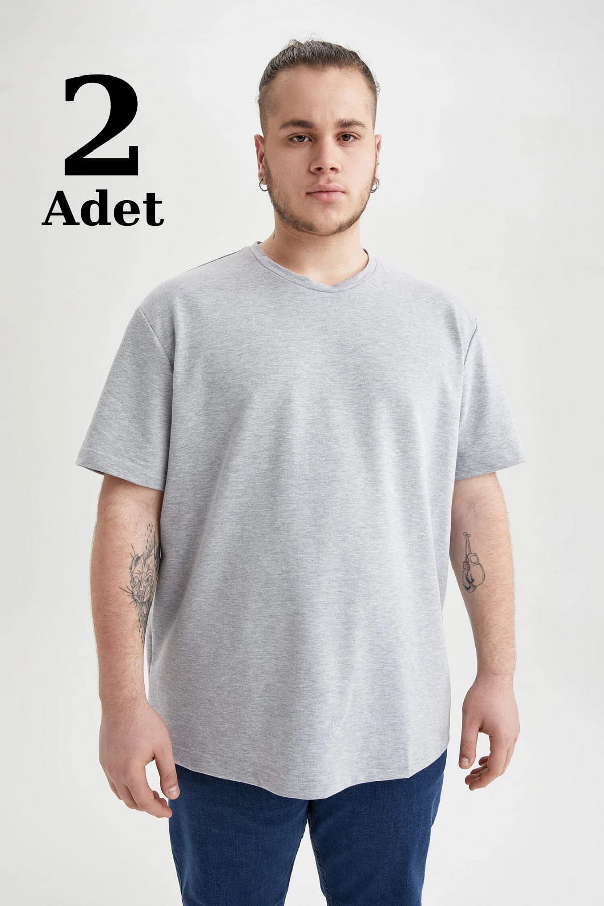 Gri tonlarında, pamuklu kumaştan üretilmiş, rahat bir O yaka büyük beden atlet. %100 Pamuk