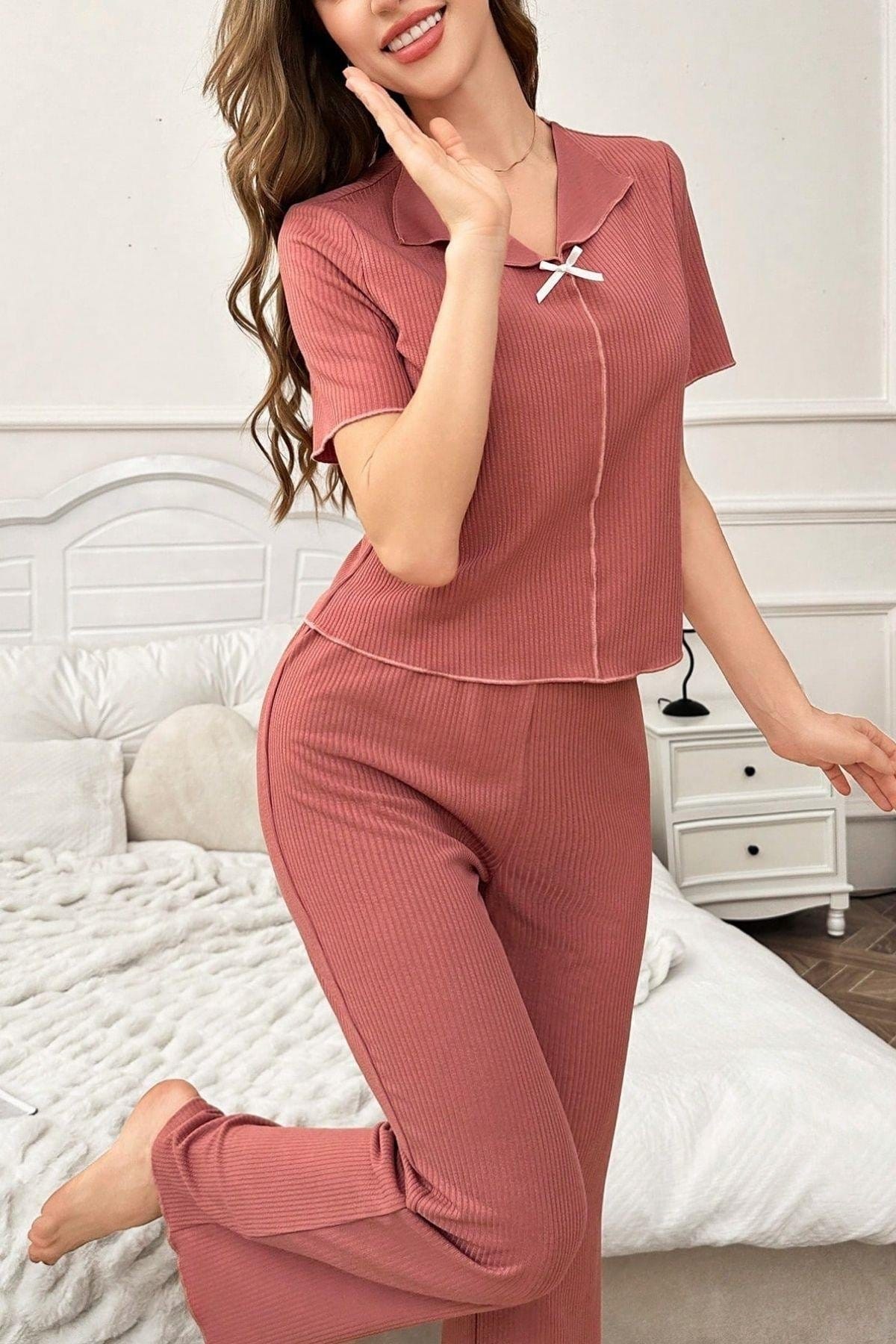 Bella Notte Gül Kurusu Pamuklu Kısa Kollu Pijama Takımı 7155 %100 Pamuk
