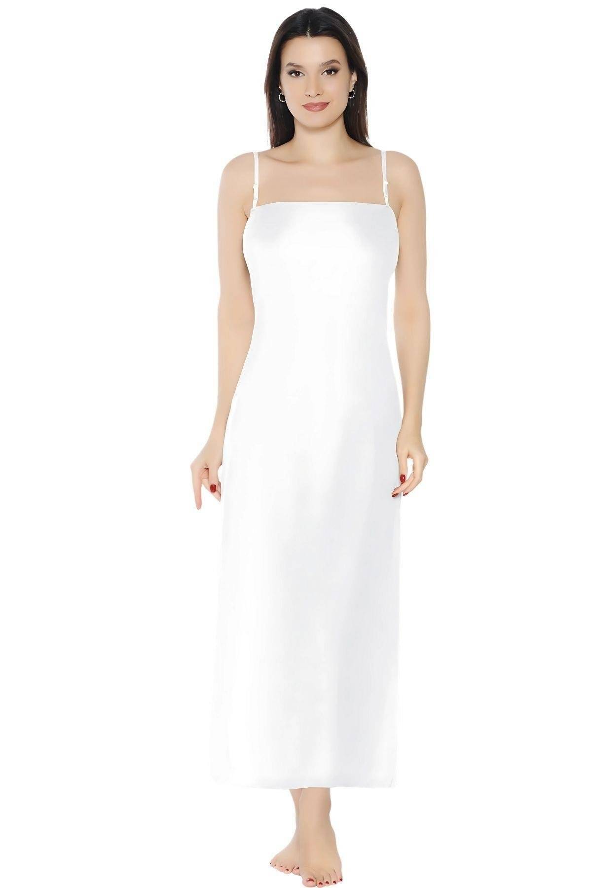 Şık ve hafif bir dokuya sahip, ince askılı uzun kombinezon. Beyaz, siyah ve somon renk seçenekleriyle dikkat çekiyor.