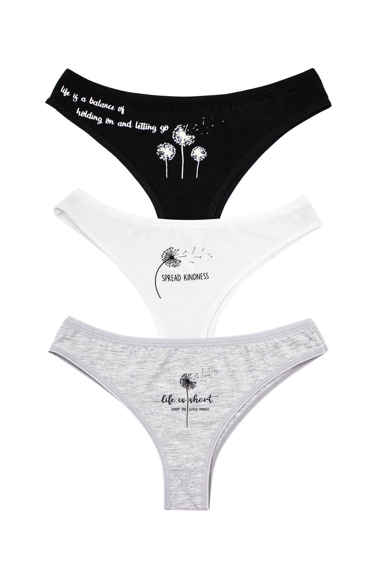Siyah, beyaz ve gri tonlarında, ince ip detaylı, minimal yapıda Brazilian string külot. %96 Pamuk, %4 Elastan