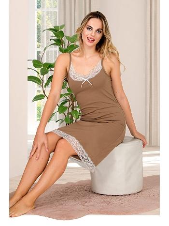 Dantelli İnce Askılı Saten Gecelik Ten Miss Laris 2120