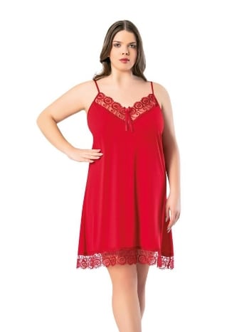 Büyük Beden Dantelli İp Askılı Kısa Gecelik Kota 6210