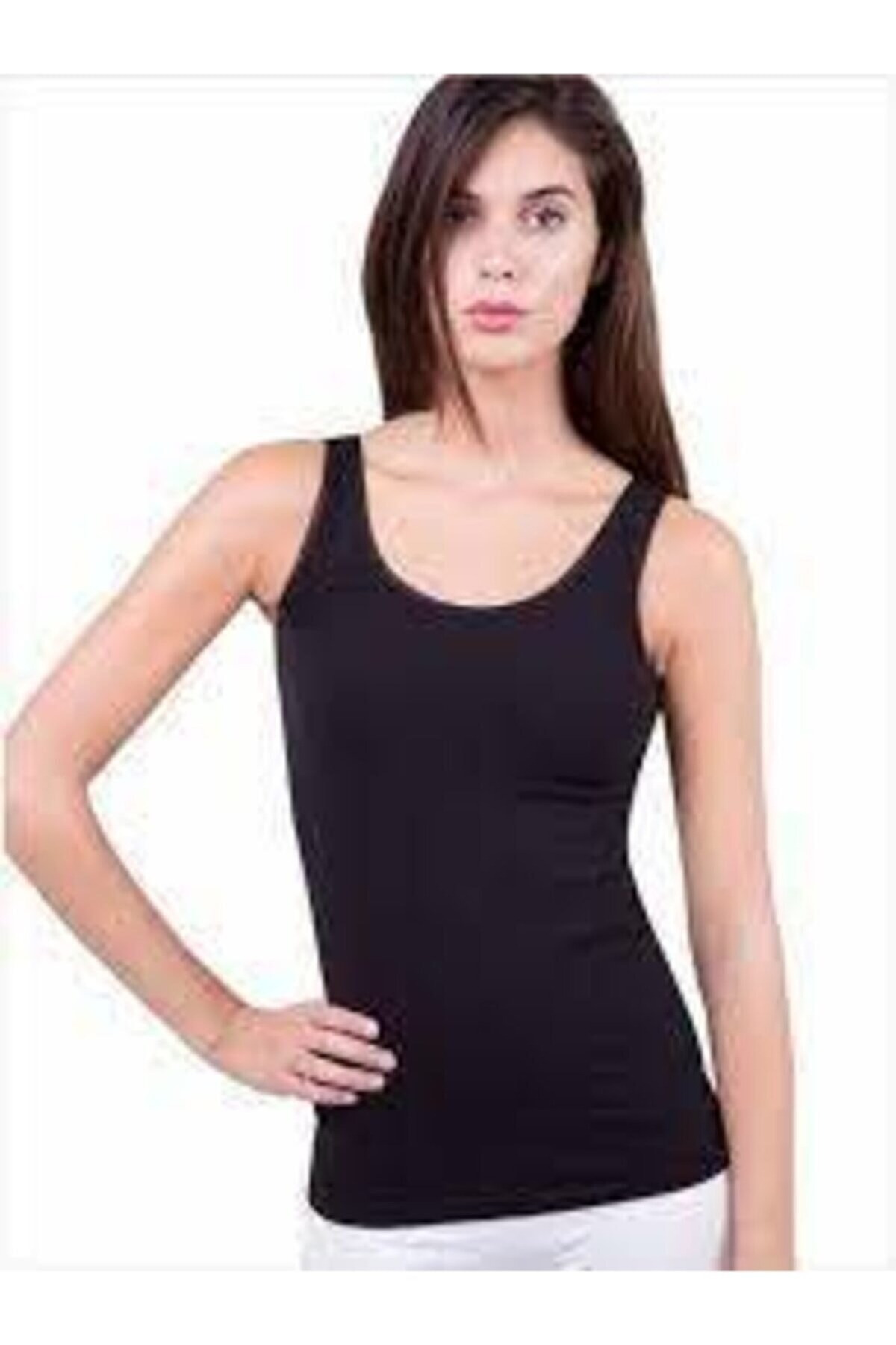 Siyah, beyaz ve ten renklerinde, kalın askılı, pamuklu, rahat bir maxi size atlet.