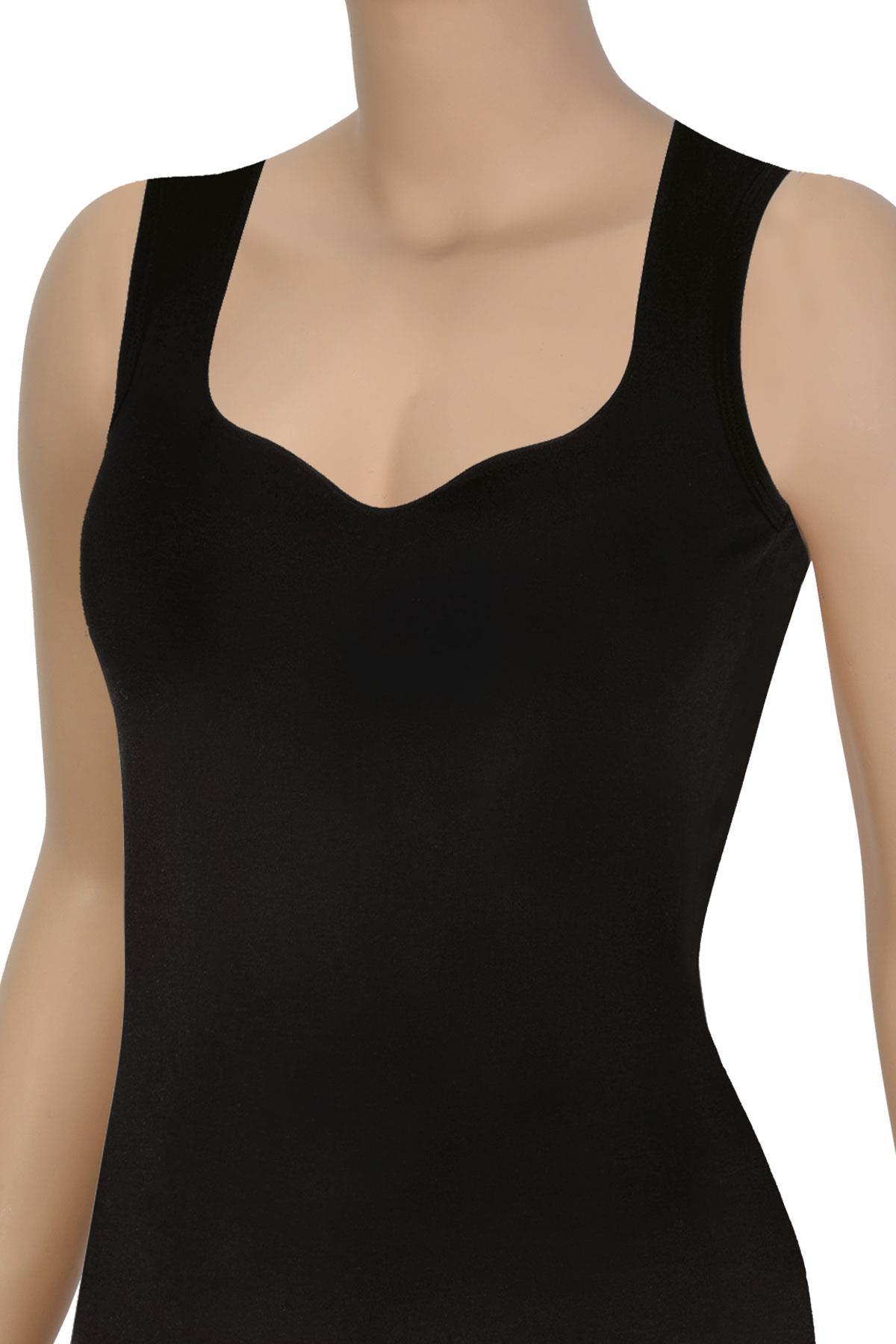 Siyah renkte, kalp yaka tasarımı ve kalın askılarıyla dikkat çeken bu atlet, günlük kullanım için idealdir. %96 Pamuk, %4 Elastan