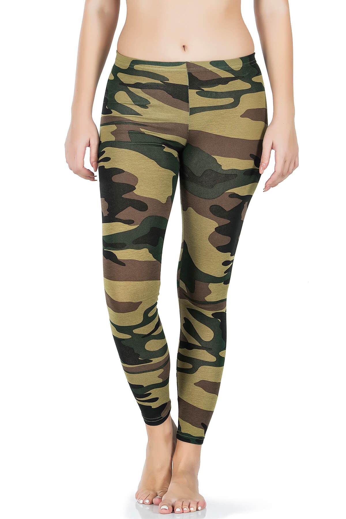 Kamuflaj desenli, yüksek bel ve esnek yapıya sahip uzun tayt, günlük kullanım için idealdir.