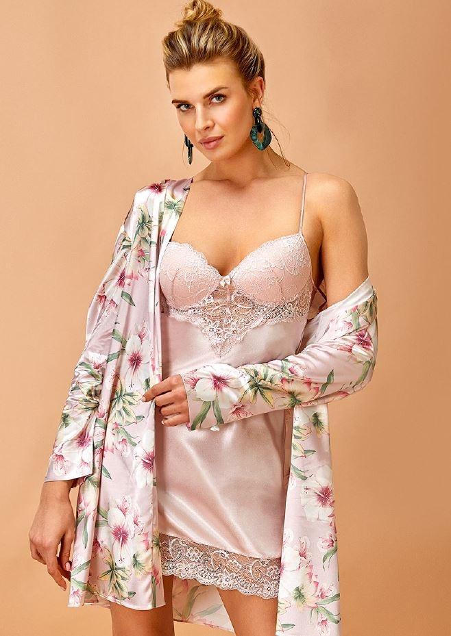 Pudra tonlarında ve zarif desenlerle süslenmiş bu gecelik, modern ve şık bir görünüm sağlıyor. Kaplı detaylar, tasarımı daha özel kılarak, gece giyimi için ideal bir seçim oluşturuyor. Gece elbisesi gibi görünüm öğeleri içeren bu takım, misafirlikte veya özel anlarınızda da rahatlıkla kullanılabilir. Böylece giydiğinizde yalnızca rahat değil, aynı zamanda şık da görünürsünüz.