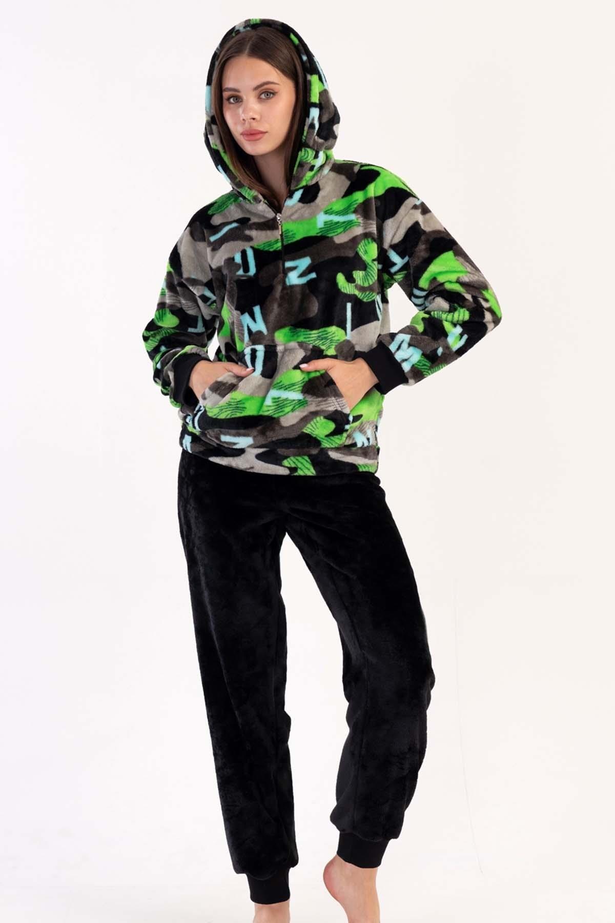 Kapüşon detayı, hem göz alıcı bir estetik yaratıyor hem de sizi soğuktan koruyor. Pijama takımı, ev giyimi arasında zarif bir tercih olmasının yanı sıra, misafirlerinizi karşılarken de rahatlıkla kullanılabilir. Günlük yaşamda ihtiyaç duyulan konforu sağlarken, stilinizden ödün vermemenize yardımcı olur. Bu takım ile evdeki her anınızı daha keyifli hale getirin.