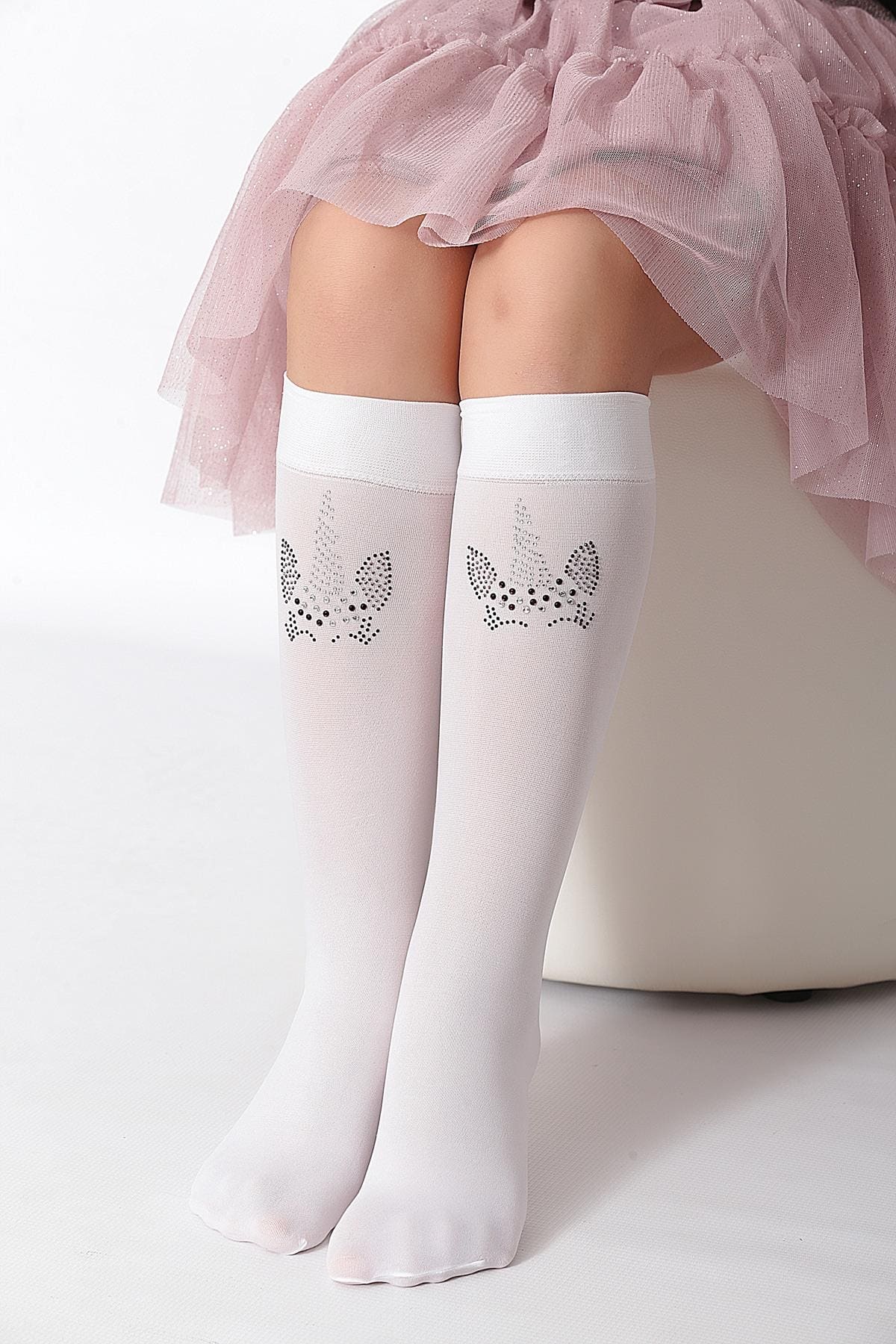 Beyaz renkte, kaydırmaz taban ile tasarlanan çocuk dizaltı çorabı, yumuşak dokusu ile konfor sunar. %89 Polyamide, %11 Elastane